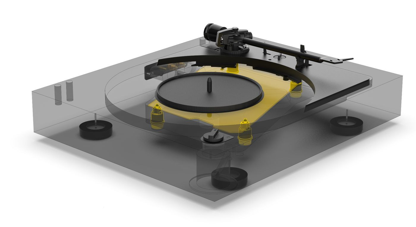 W pełni automatyczny gramofon bazuje na solidnym chassis z MDF-u, w którym umieszczono pływające sub-chassis, na którym z kolei zainstalowano ramię, łożysko talerza i napęd. Całość stoi na nóżkach z aluminium z wkładem tłumiącym z silikonu. Obudowa ma elegancki, czarny matowy kolor (8 warstw).
