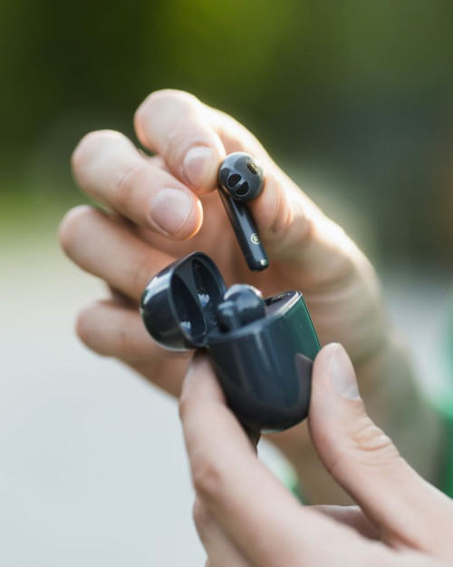 Wspomniana technologia redukcji hałasu ANC automatycznie dopasowuje odpowiedni tryb do panujących warunków i skutecznie eliminuje zbędny szum z zewnątrz. Słuchawki obsługują przy tym zaawansowany algorytm sztucznej inteligencji, który filtruje zbędne dźwięki dochodzące z otoczenia.