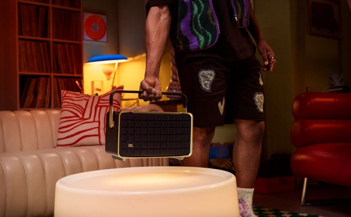 Model JBL Authentics 300 oferuje przenośny dźwięk o wysokiej wydajności, który można odtwarzać do 8-godzin dzięki wbudowanemu akumulatorowi. Jak mówi producent, zapewnia wyraziste wysokie tony i głęboki bas.