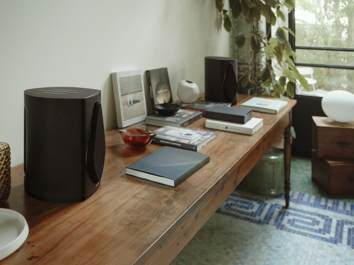 System zawiera również dwa wzmacniacze - jeden klasy AB o mocy 100 W, który obsługuje przetwornik wysokotonowy oraz wzmacniacz klasy D o mocy 205 W, który dostarcza moc potrzebną przetwornikowi średnio-niskotonowemu do reprodukcji głębokiego i mocnego basu.