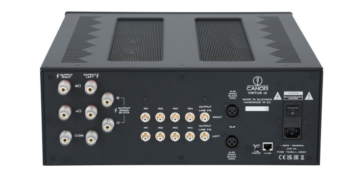 Dzięki opcji sterowania synchronicznego Canor Audio Virtus I2 pozwala na wykorzystanie dwóch wzmacniaczy w trybie monoblokowym bez konieczności stosowania dodatkowego przedwzmacniacza.