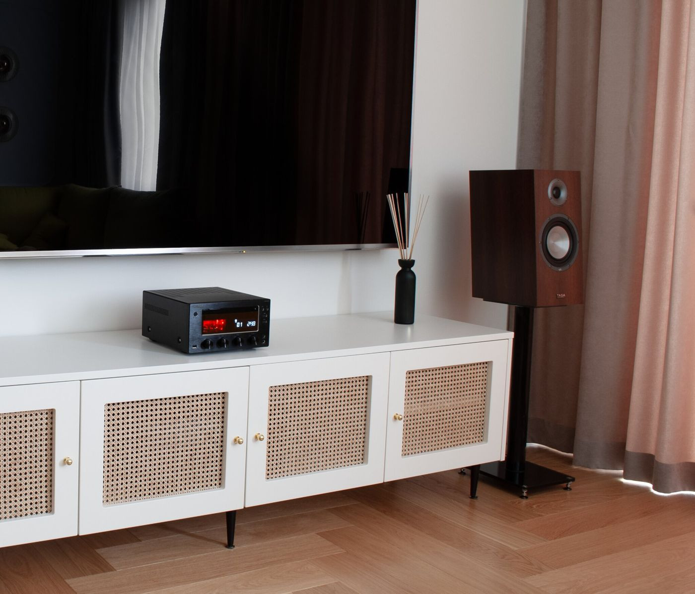 HTR-1000CD v.3 jest hybrydową konstrukcją z przedwzmacniaczem bazującym na lampach PSVANE ECC83 z serii Classic. Wysoka moc 90W na kanał jest dostarczana przez powiększony toroidalny transformator i pozwala na poprawne wysterowanie różnych typów kolumn głośnikowych.