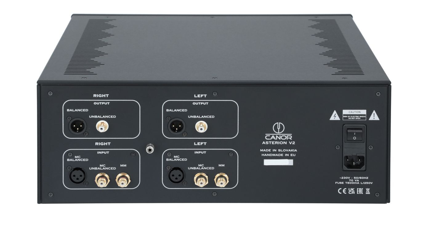 W przedwzmacniaczu Canor Asterion V2 tory sygnałowe dla obu kanałów są ściśle odseparowane i mają oddzielną filtrację napięcia zasilania. Stabilizacja napięcia następująca oddzielnie dla prawego i lewego kanału, poprawia separację kanałów, co pozwala zminimalizować szumy oraz zakłócenia.