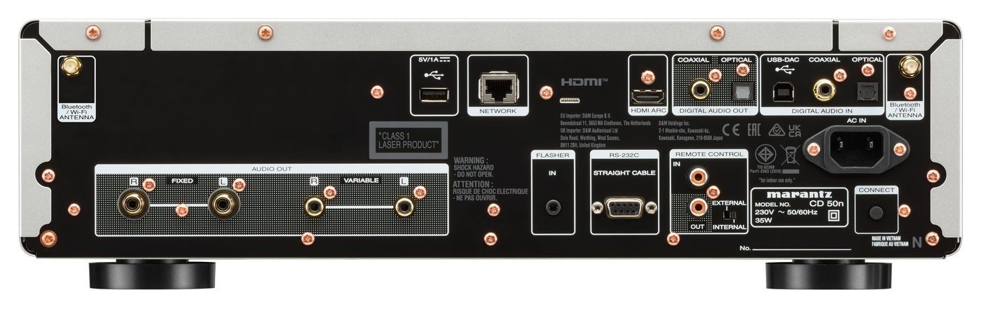 Streaming muzyki z urządzeń mobilnych jest również możliwy za pośrednictwem Bluetooth, Spotify Connect oraz AirPlay2. Do Marantza CD 50n można nawet podłączyć telewizor, korzystając z łączności HDMI ARC.