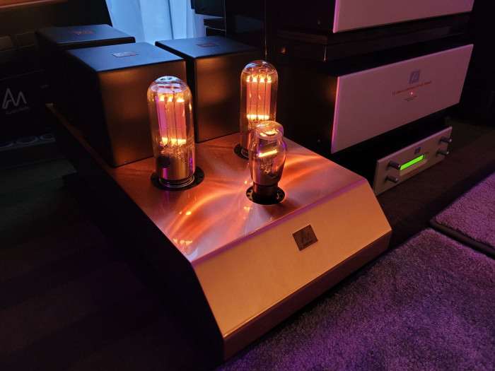 • lampowe monobloki mocy Gaku-On z triodami mocy o anodach z molibdenu 4242E w konfiguracji równoległe single-ended, które w układzie tego wzmacniacza są sterowane lampą sprzed 100 lat, jaką jest trioda VT-25 z katodami z torfowanego wolframu.
