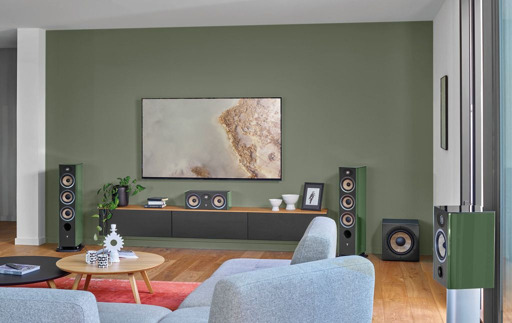 Kolumny Focal Aria Evo X są dostępne w wykończeniach - Moss Green High Gloss, Black High Gloss i Prime Walnut - każde połączone ze skórzanymi panelami przednimi.
