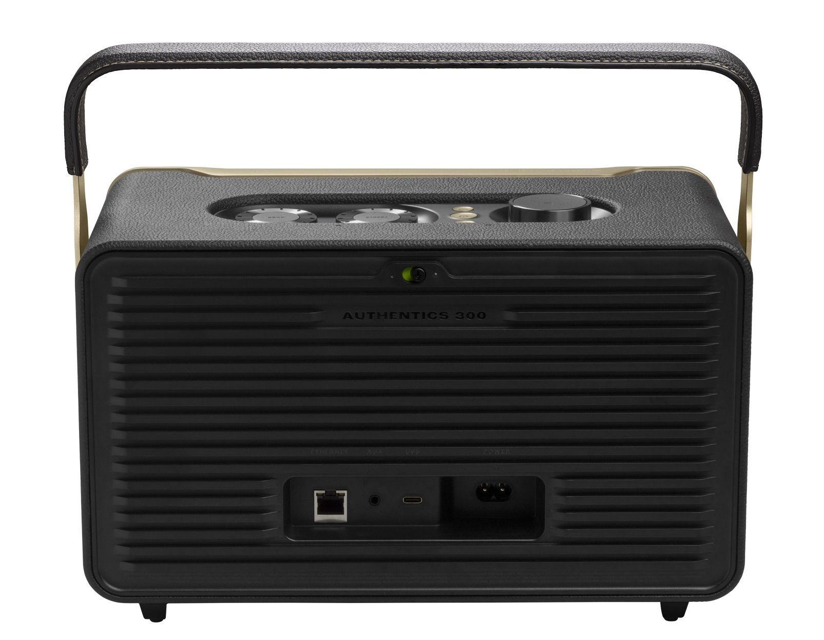 JBL Authentics 300 został wyposażony w parę 25-milimetrowych głośników wysokotonowych, pełnozakresowy 5,25-calowy głośnik niskotonowy i 6,5-calowy pasywny radiator.