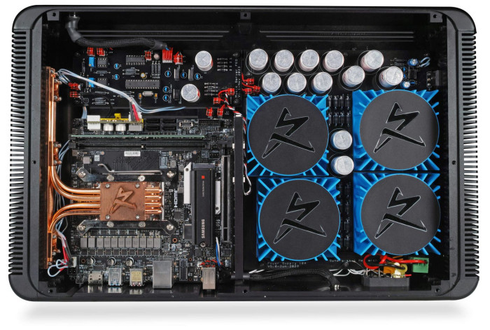 Obudowa Voodoo jest wykonana z jednolitego bloku aluminium lotniczego poddanego obróbce CNC. Pokrywa górna powstała z włókna węglowego i brązu, także nóżki wykonano z włókna węglowego. Obudowa działa jak masywny radiator rozpraszający znaczne ilości ciepła generowanego przez potężny komputer z systemem Linux.