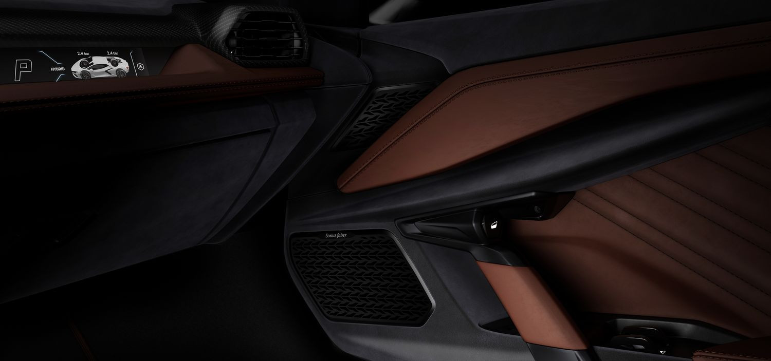 System Lamborghini i Sonus faber obejmuje łącznie 7 głośników, w tym 1 głośnik wysokotonowy i 1 głośnik średniotonowy w każdych drzwiach, 1 głośnik pełnozakresowy w desce rozdzielczej jako kanał centralny oraz 2 zintegrowane głośniki pełnozakresowe z funkcją surround, które są umieszczone tuż za kierowcą i pasażerem.