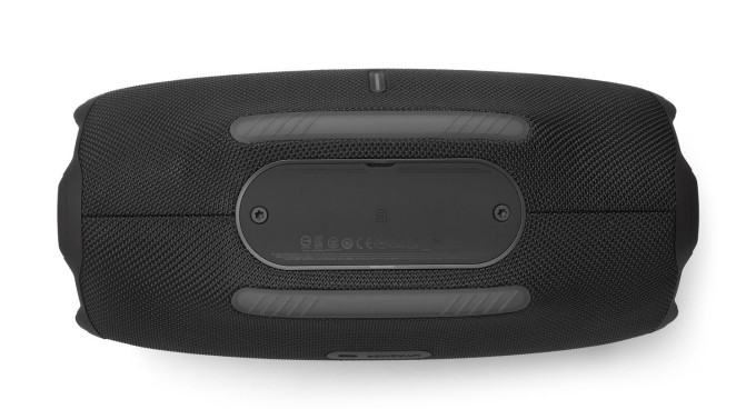 Głośnik skrywa dwa wydajne przetworniki niskotonowe i dwa wysokotonowe, oferując dźwięk JBL Pro. Za głęboki bas odpowiadają dwa pasywne, pulsujące radiatory.