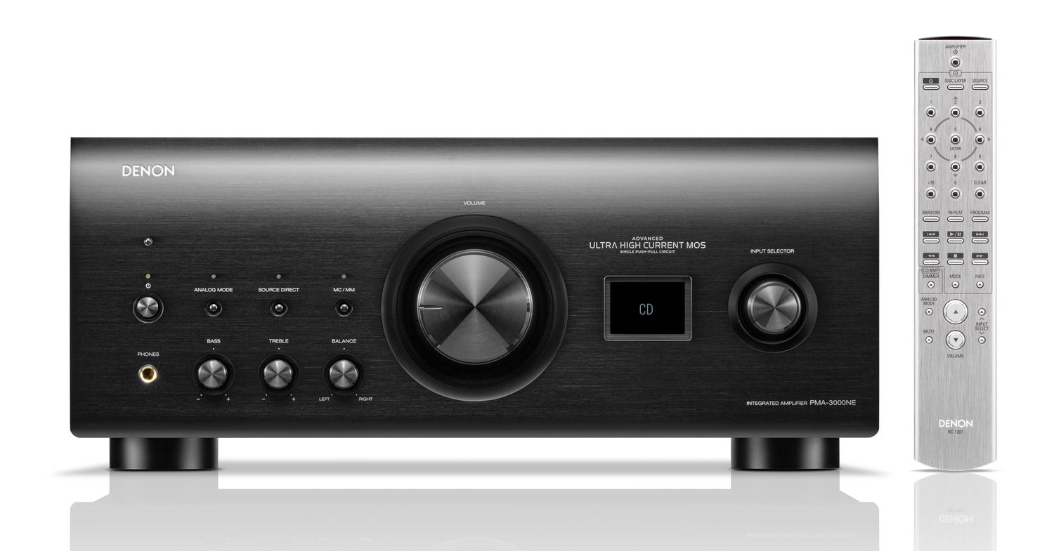 Denon PMA-3000NE dostarcza 80W/kanał przy 8 Ω i 160W/kanał przy 4 Ω. Pojedynczy obwód push-pull UHC-MOS i różnicowy 2-stopniowy wzmacniacz napędzają, jak mówi producent, wymagające głośniki z wyjątkową czystością i liniowością.