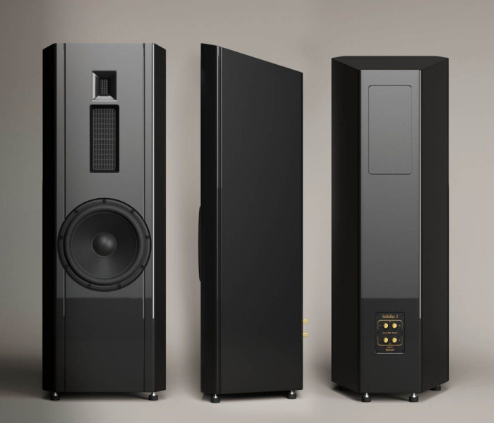 2. Najnowszy model kolumn Solidus S szczecińskiej firmy Sisound. Konstrukcja niecodzienna, bo oparta na dwóch wstęgach planarnych, odtwarzające zakresy wysokich oraz średnich tonów. Na basie zastosowano olbrzymi, 13 calowy głośnik ScanSpeaka z serii Revelator pracujący w obudowie zamkniętej.