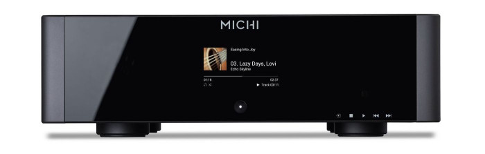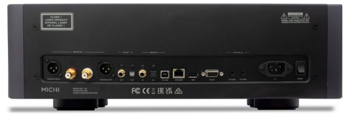 Michi Q5 wyposażono w ładowany od góry napęd CD korzystający z precyzyjnego, optycznego czytnika laserowego. Cały element zamknięto w solidnej obudowie wykonanej z wysokiej jakości aluminium frezowanego metodą CNC. Takie rozwiązanie zapewnia wyjątkową trwałość konstrukcji przy jednoczesnym zachowaniu nowoczesnego, stylowego wyglądu.