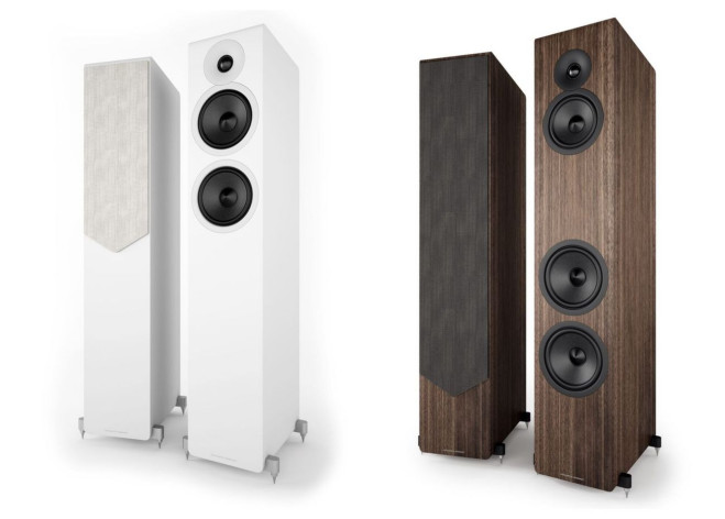 Kolumny są wykończone bardzo trwałym matowym, jedwabistym w dotyku materiałem, solidnymi aluminiowymi nóżkami (w modelach stojących na podłodze) i dopasowanymi tkaninami maskownic Premium.