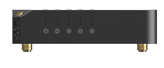 Połączenia obejmują USB-B, AES/EBU, I2S i koncentryczne, a także galwanicznie izolowane wyjście I2S.