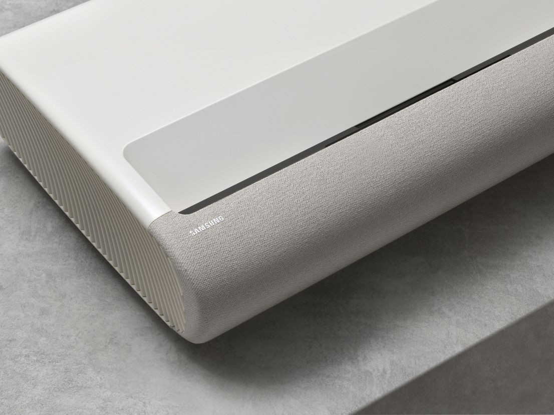 Projektory Samsung The Premiere oferują również potężne brzmienie. Zostały wyposażone w wbudowane głośniki z technologią Dolby Atmos, które zapewniają mocny, przestrzenny dźwięk. Model LPU9D posiada 40-watowe głośniki w formacie 2.2.2 skierowane ku górze oraz wbudowane głośniki niskotonowe, które tworzą szeroką kopułę dźwiękową, a model LPU7D – 30-watowe głośniki.