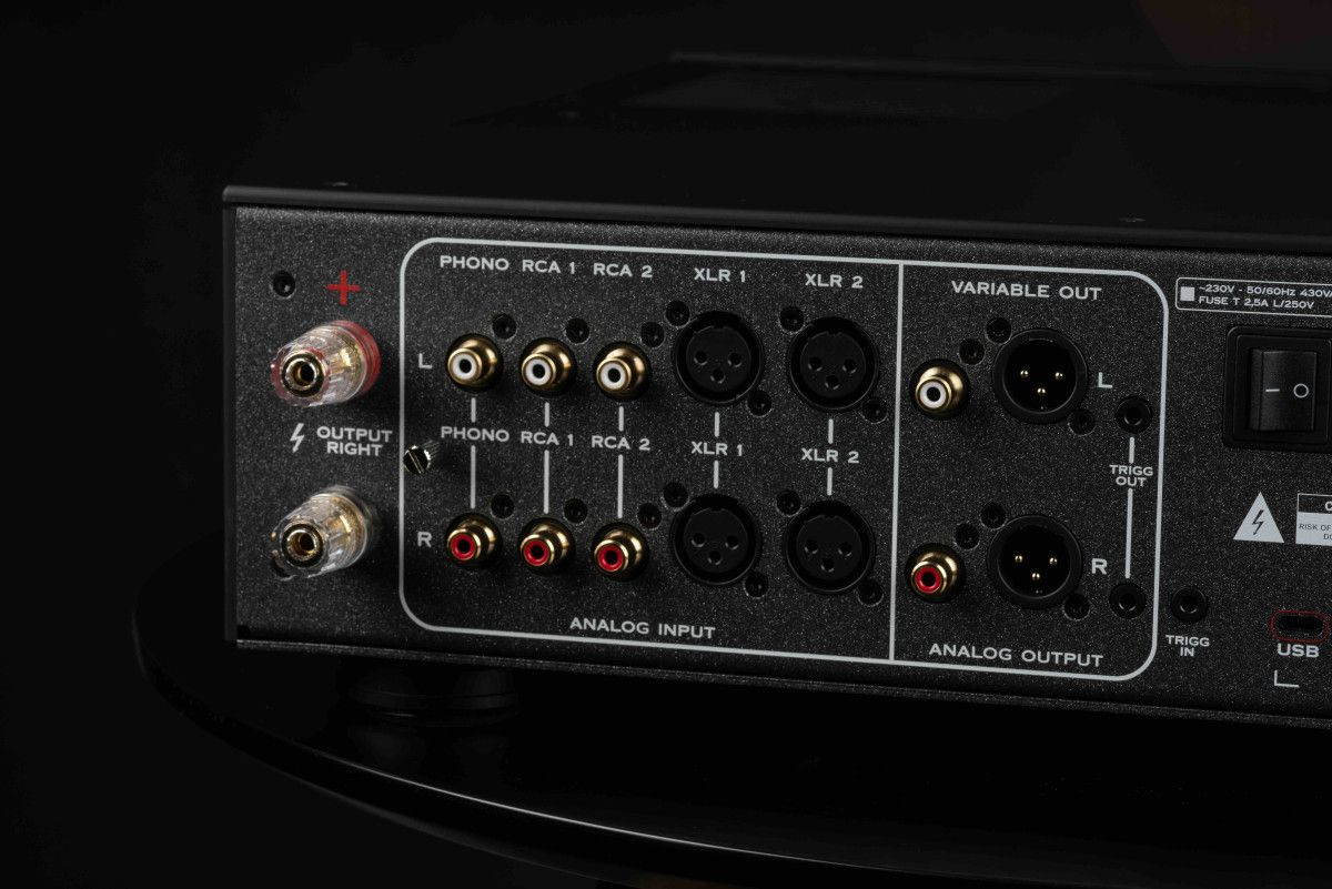 • Cztery produkty w jednej obudowie - hybrydowy wzmacniacz mocy klasy A/AB, przedwzmacniacz gramofonowy, wzmacniacz słuchawkowy i przetwornik cyfrowo-analogowy.