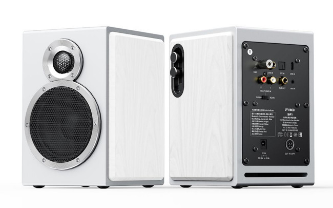 Najnowsze kolumny aktywne od FiiO to także pełen wachlarz możliwości połączeniowych. Bezprzewodowo oferują one połączenie Bluetooth 5.4 wspierające takie kodeki, jak LDAC. Jeżeli zaś chodzi o gniazda wejściowe, to mamy zarówno wejście USB Audio, jak i także koncentryczne oraz optyczne.