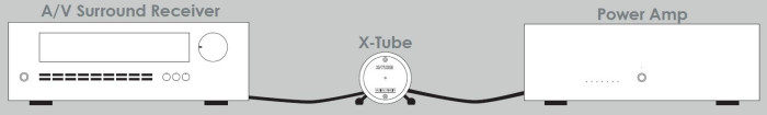 X-Tube wzmacnia dźwięk przednich kanałów stereo amplitunera audio-wideo przesyłanych do wielokanałowego wzmacniacza mocy.