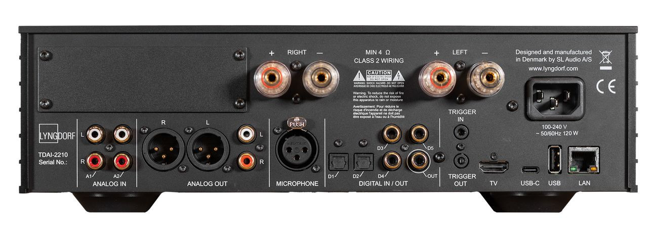 Lyngdorf TDAI-2210 oferuje szeroką gamę wejść – w tym HDMI 2.1, USB-C, wejścia analogowe, a także pełną integrację z serwisami streamingowymi (Spotify Connect, TIDAL Connect, Roon Ready, Chromecast, AirPlay2, airable i inne).