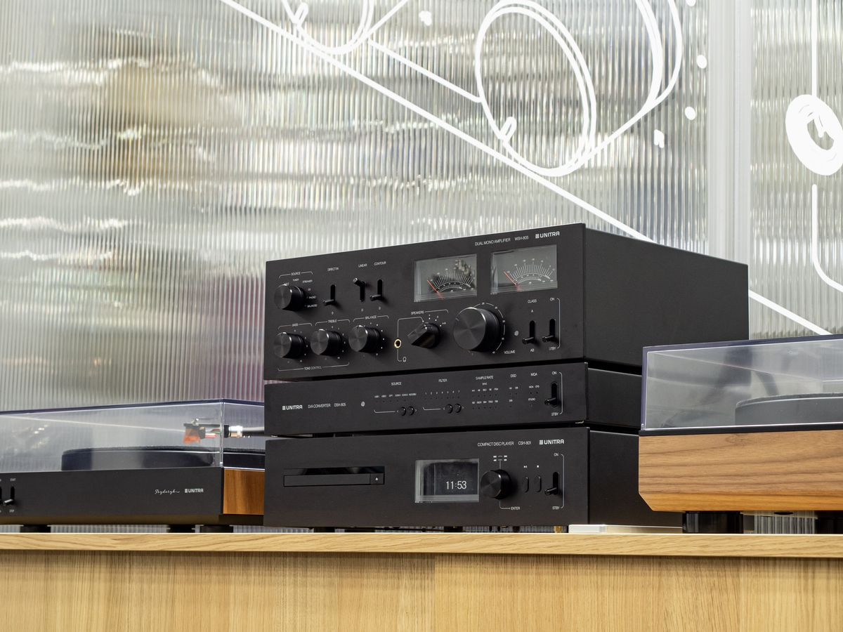 Nowa edycja klasycznego wzmacniacza Unitry to nie tylko zmiana estetyczna. Jest to przemyślany powrót do korzeni. Boczne panele z naturalnego forniru z orzecha amerykańskiego wprowadzają element ciepła i elegancji, który wyróżnia się na tle typowych konstrukcji metalowych. Charakteru całości dodają mosiężne przełączniki i nowe, żółte wskaźniki wychyłowe, a więc detale, które przywołują ducha klasycznego hi-fi.