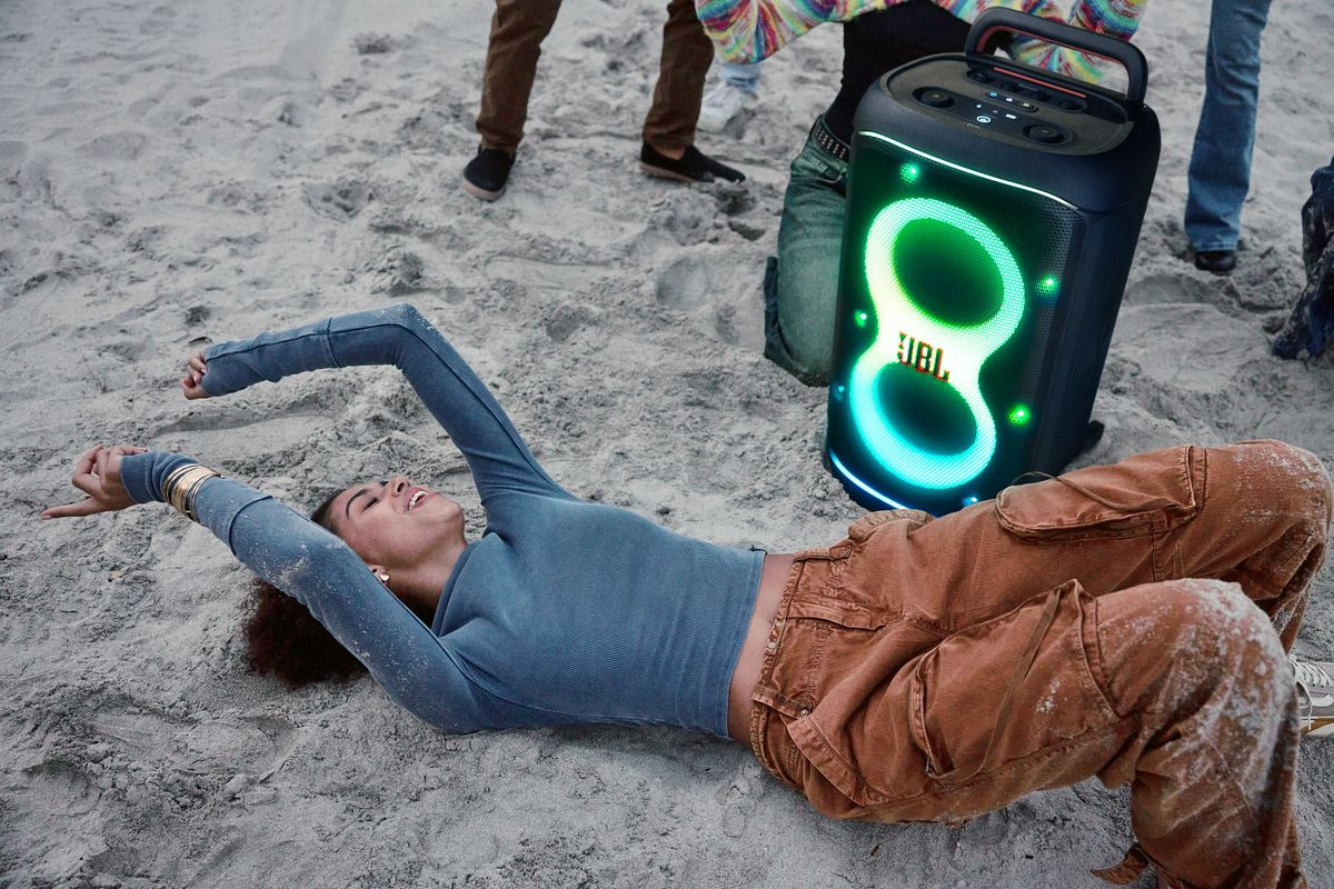 Sparowanie JBL Partybox 520 z innymi głośnikami z obsługą JBL Auracast pozwoli wzmocnić dźwięk i kontrolować go bezpośrednio z aplikacji JBL PartyBox. Podobnie jak sterowanie muzyką, ustawieniami korektora i efektami świetlnymi.