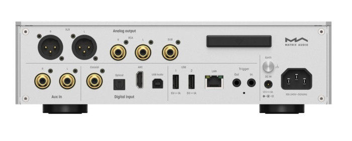 Matrix Audio TS-1 obsługuje m.in. Tidal Connect, Roona, AirPlay2 i wiele innych i ma rozbudowaną gamę połączeń. Znajdziemy tutaj nie tylko pełną paletę cyfrowych wejść audio, lecz także wejście analogowe czy wyjście na subwoofer. O najwyższą jakość dźwięku dba konstrukcja przetwornika cyfrowo-analogowego z podwójnym zegarem Femto.