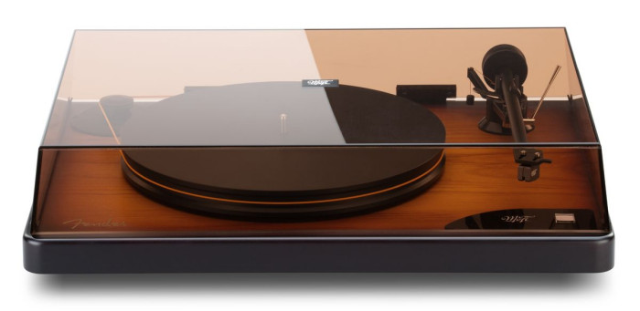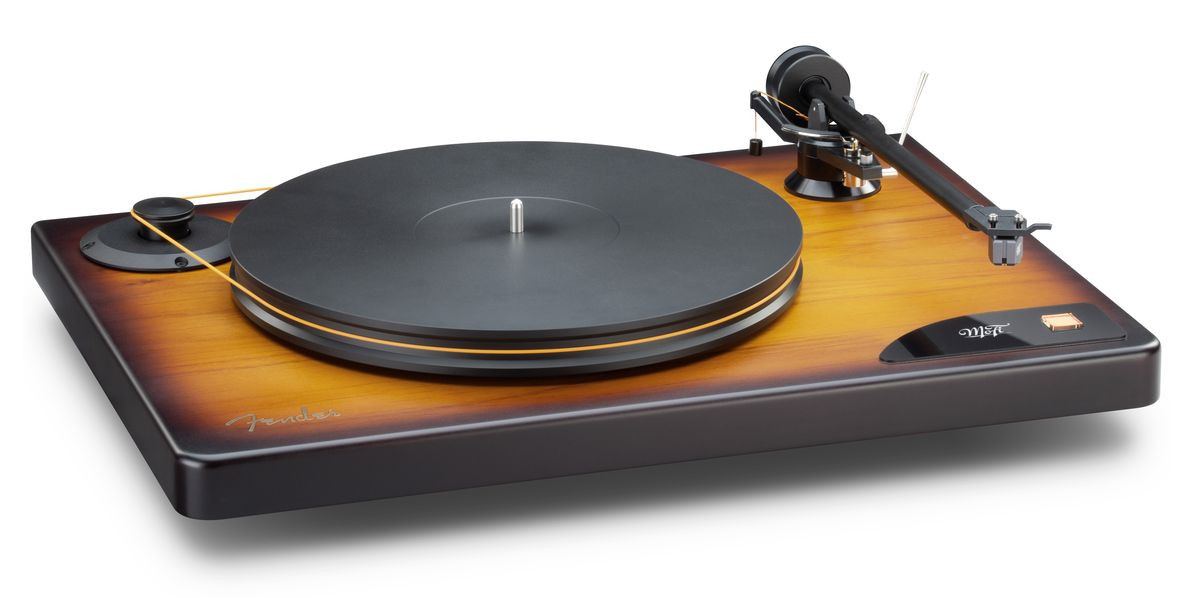 Konstrukcja gramofonu opiera się na ręcznie malowanej, trójkolorowej obudowie z drewna olchowego (alder), wykończonej w charakterystycznym dla Fender stylu sunburst. To hołd dla estetyki gitar Stratocaster i Telecaster z lat 50. XX wieku.
