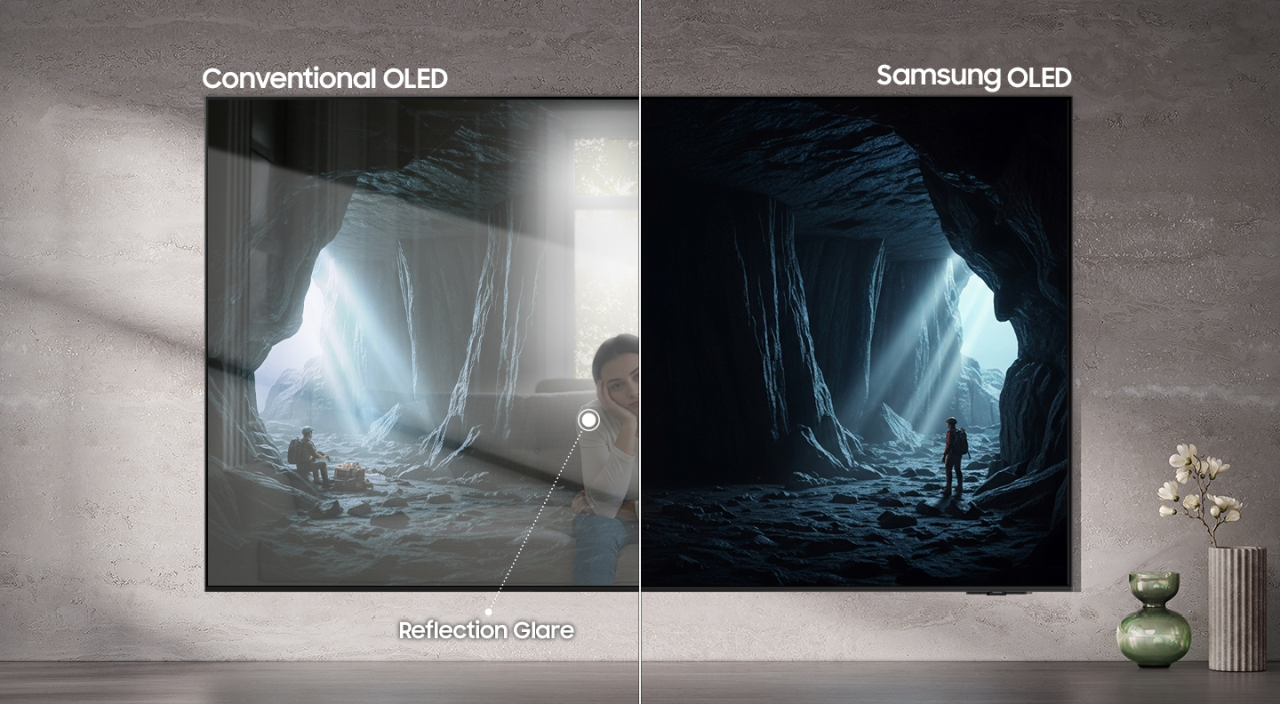 Warto zwrócić uwagę także na modele Samsung OLED S95F oraz S90F. Wyróżnikiem tych telewizorów są kolory OLED i głęboka czerń, duża jasność, ekran bez refleksów dzięki Glare Free[4] oraz technologia Skalowania AI 4K. Jest ona zasilana przez 128 sieci neuronowych, wspierana przez sztuczną inteligencję, aby przekształcać treści do rozdzielczości zbliżonej do 4K.
