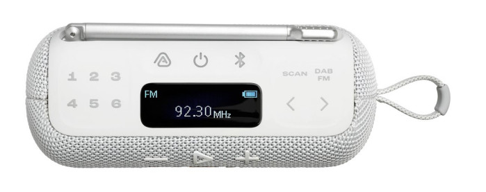 Radio jest wodoodporne i pyłoszczelne (IP67), a pasek umożliwia jego wygodne przenoszenie. Czas pracy wynosi 12 godzin na jednym ładowaniu oraz 3 dodatkowe godziny dzięki funkcji Playtime Boost.