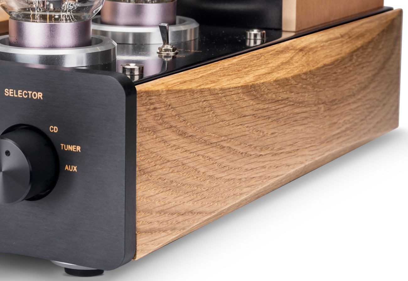 Ale to nie koniec. Urządzenia Pier Audio mające, standardowo, bordowe boczki otrzymały teraz opcjonalne wykończenia w kolorach orzech, jasny dąb oraz czerń (odcień drewna może nieznacznie różnić się w zależności od partii dostawy).