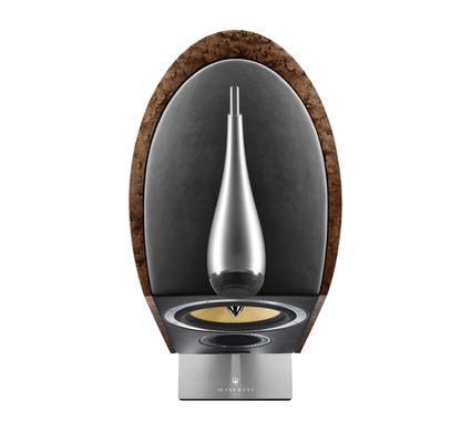 Klonowy fornir "bird`s eye" oraz skóra są synonimem luksusowych wnętrz samochodów włoskiej marki. Zintegrowana podstawa głośnikowa kolumny 805 Maserati Edition została wykończona takim samym lśniącym fornirem i przyozdobiona trójzębem Maserati. Trójząb, który jest częścią tożsamości Maserati już od 1926 r., aprojektował Mario Maserati, wzorując się na elemencie pochodzącym z posągu Neptuna umieszczonego w fonta nnie Piazza Maggiore w Bolonii.