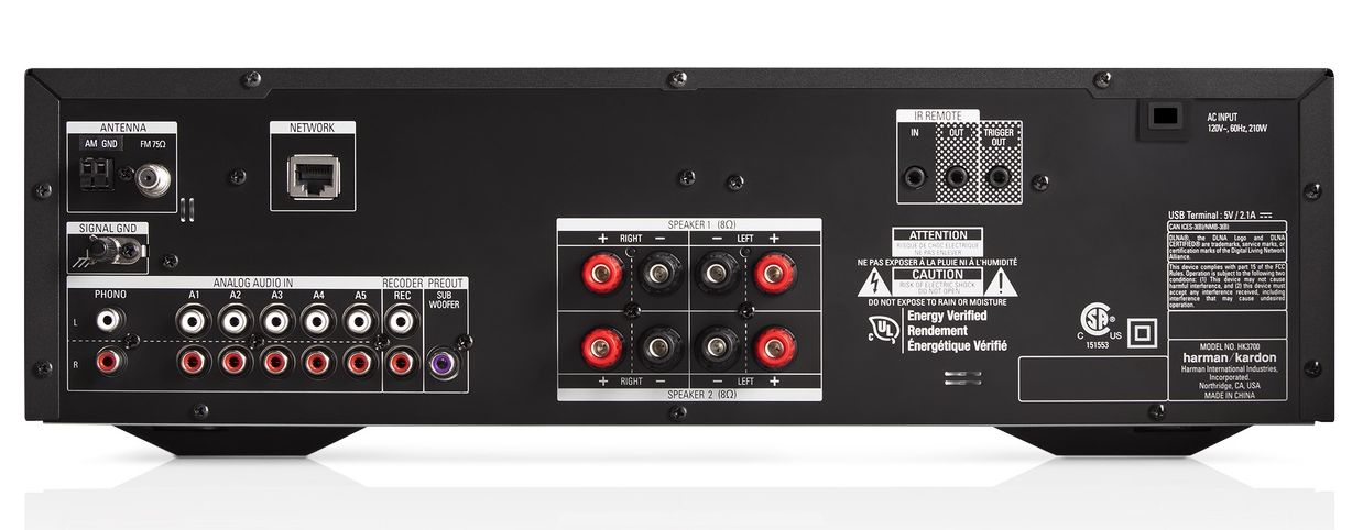 Oba urządzenia mogą czerpać sygnał dźwiękowy z każdego komputera, smartfonu i tabletu, a także z wbudowanego radia AM/FM oraz odtwarzaczy cyfrowych i analogowych. Mamy tu więc pięć wejść analogowych, wejście Phono dla gramofonu, trzy wejścia cyfrowe (1 koaksjalne i dwa optyczne) oraz na przednim panelu gniazdo USB, które pozwala podłączyć nie tylko pamięć flash (z plikami MP3, WMA lub WAV), lecz także - za pośrednictwem przewodu - każde urządzenie Apple. To ostatnie odbywa się przez wysokiej rozdzielczości konwerter sygnału cyfrowego na analogowy. Amplituner Harman Kardon 3770 wyposażono również w Bluetooth.