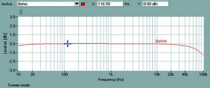 Poziom szumów to przeciętne -82dB, dynamika osiągnęła 102dB. Charakterystyka z rys.1 pokazuje, że Harman świetnie radzi sobie na skraju przy 10Hz (-0.2dB) i ma spadek zaledwie -1.2dB dla 100kHz.