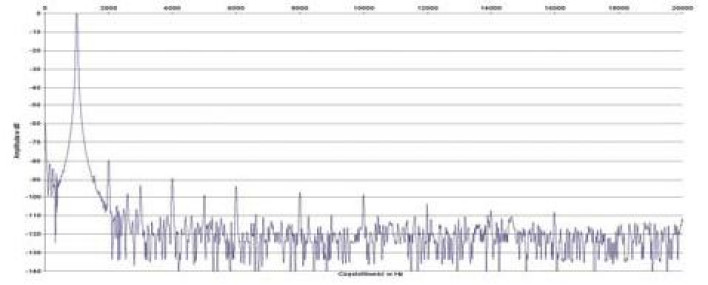 W spektrum zniekształceń (rys.1) przeważają parzyste, ale najsilniejsza druga pojawia się przy "rozsądnych" -79 dB, czwarta przy -88 dB, a kolejne nie przekraczają -90 dB.