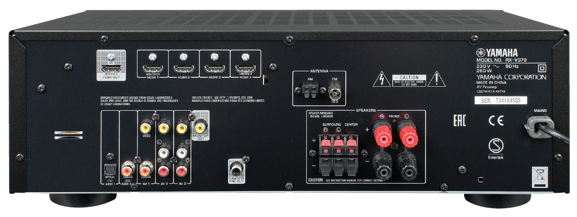 Wejściom i wyjściom HDMI towarzyszą analogowe przyłącza audio i wideo. Po dodaniu BT, wejścia audio na przednim panelu i wewnętrznego tunera okazuje się, że RX-V379 może współpracować z trzynastoma źródłami.