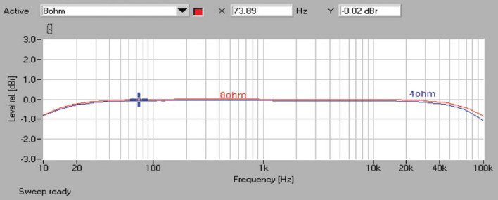 Poziom szumów nie jest najniższy, ale w gruncie rzeczy takim sam jak u konkurentów - tak więc S/N wstydu nie przynosi. Marantz ma znakomitą charakterystykę przenoszenia (rys.1), spadki przy 10 Hz nie przekraczają -1 dB, a przy 100 kHz podobny pojawia się dla impedancji 4-omowej.
