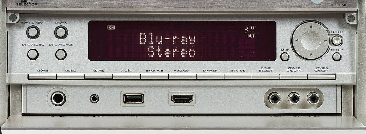 Wejście USB, zlokalizowane na przednim panelu, jest przeznaczone na pendrajwy, dyski (FAT16/32) i urządzenia Apple. Przez USB można podać pliki 24 bit/192 kHz (Flac) i DSD 2,8 MHz. Wśród podręcznego wyposażenia jest również wyjście słuchawkowe, wejście HDMI (4K), podręczne wejście AV oraz przyciski pozwalające na obsługę urządzenia w dość szerokim zakresie.