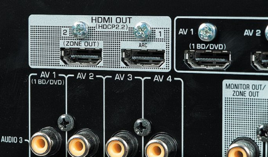 Zestaw HDMI obejmuje siedem wejść i dwa wyjścia. Wszystkie prowadzą do przełącznika matrycowego obsługującego 4K (60 Hz, 4:4:4, HDCP2.2). Wejście na przednim panelu nie obsługuje 4K. Sygnały wizyjne z wejść analogowych są zamieniane na cyfrowe i upsamplowane do 4K. Jedno z wyjść HDMI ma ARC, drugie może zasilać dodatkową strefę.