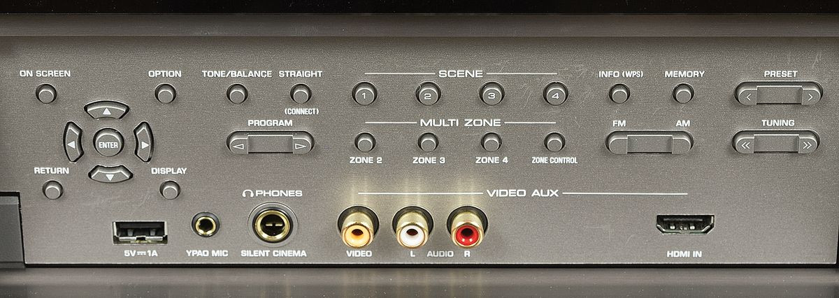 USB obsługuje urządzenia Apple, pendrajwy i HDD; tą drogą można także dostarczyć pliki HD. Za wyjściem słuchawkowym stoi algorytm Yamahy Silent Cinema, kreujący wirtualny dźwiękdookólny.