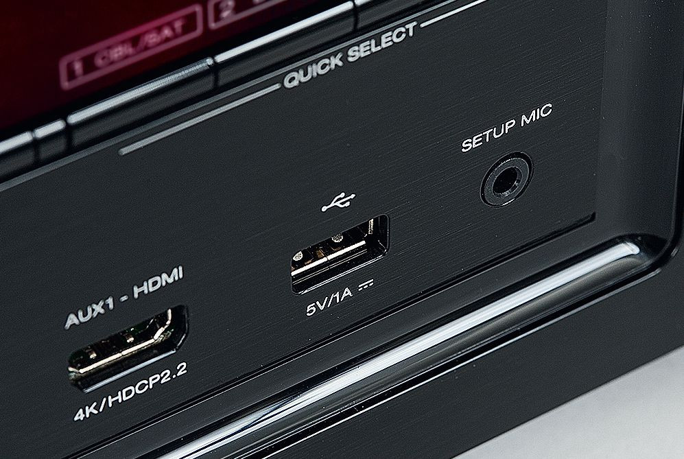 USB ma spodziewaną dla Denona funkcjonalność: obsługuje urządzenia Apple (także ładuje), pozwala na odczytywanie z pendrajwów i twardych dysków plików o wysokiej rozdzielczości. HDMI zaserwowane z przodu obsługuje UHD, ale ma węższe pasmo niż pozostałe (4:2:0).
