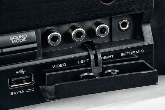 W porównaniu z bratnim Denonem zrezygnowano z szybkiego dostępu do czterech najważniejszych źródeł (i powiązanym z nimi pakietem indywidualnych konfiguracji). Maleńka klapka, wydłubywana paznokciem, zakrywa najprostsze wejścia AV (stereo na RCA, kompozyt wideo) i mini-jack dla mikrofonu kalibracyjnego systemu Audyssey.