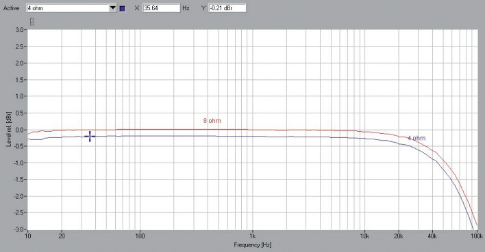 Producent wykazał się tu ostrożnością, dbając przede wszystkim o to, aby urządzenie się nie "grzało" (i nie przekraczało dozwolonych przez UE temperatur), a nie o to, aby w pełni wykorzystać jego potencjał. W stereo moc przy 8 Ω wynosi 2 x 121 W, a przy 4 Ω – 2 x 68 W.