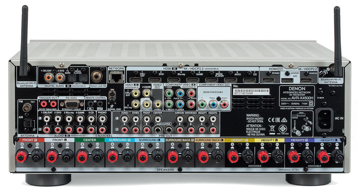 Denon AVC-X4500H ma łącznie osiem wejść i trzy wyjścia HDMI. Wejścia kompozytowe są trzy, a komponentowe dwa, analogowe wyjścia wideo zaplanowano odpowiednio w proporcjach 2/1.