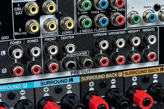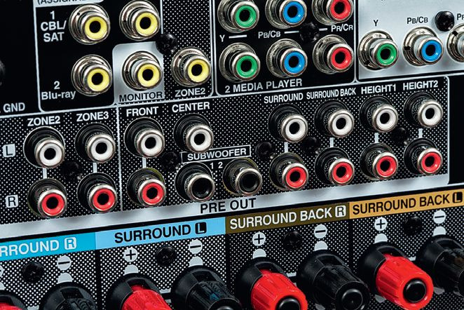 W strefie audio jest sześć wejść analogowych RCA (wśród nich wejście gramofonowe dla wkładek MM), dwie pary w formatach optycznym i współosiowym (łącznie cztery) oraz firmowy interfejs Denon Link HD (tylko we współpracy ze źródłami Denona).