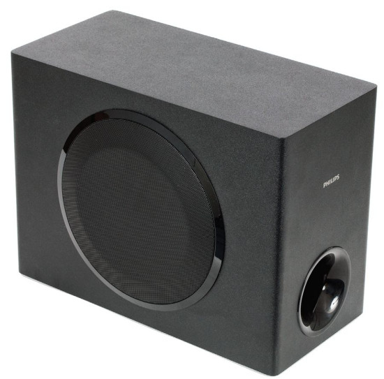 Subwoofer jest średniej wielkości, z 20-cm głośnikiem niskotonowym umieszczonym z boku, i bas-refleksem z przodu. Soundbar komunikuje się z subwooferem bezprzewodowo.