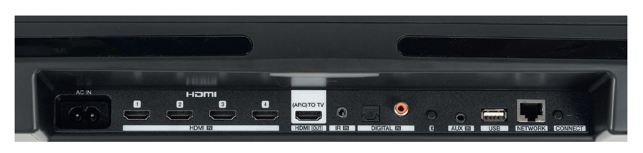 Sekcja przyłączeniowa niewiele ustępuje amplitunerom AV, przygotowano aż cztery wejścia HDMI, cyfrowe złącza współosiowe i optyczne, USB, wejście analogowe...