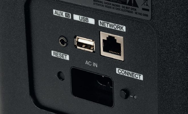 Z tyłu DSW-1H, zamiast kompletu typowych, subwooferowych gniazd, jest USB, sieć LAN, a nawet liniowe wejście AUX do strumieniowania w ramach systemu HEOS.