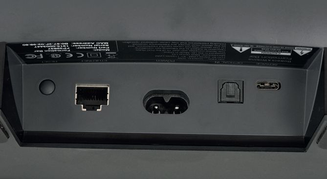 Trudno jednak nie wytknąć braku złącza HDMI. Jedyną możliwością podłączenia telewizora (albo źródeł A/V) pozostaje więc wejście optyczne. Jedynym formatem surround, jaki Formation Bar potrafi przyjąć, jest Dolby Digital. Nie ma też komunikacji (telewizor–soundbar) związanej z arsenałem funkcji w ramach sterowania towarzyszącego zwykle HDMI.