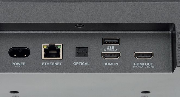 Z tyłu jest jedno wejście HDMI i jedno wyjście tego typu, obsługujące sygnały 4K z Dolby Vision, do wyjścia można podać niemal dowolny strumień dzięki układowi eARC.